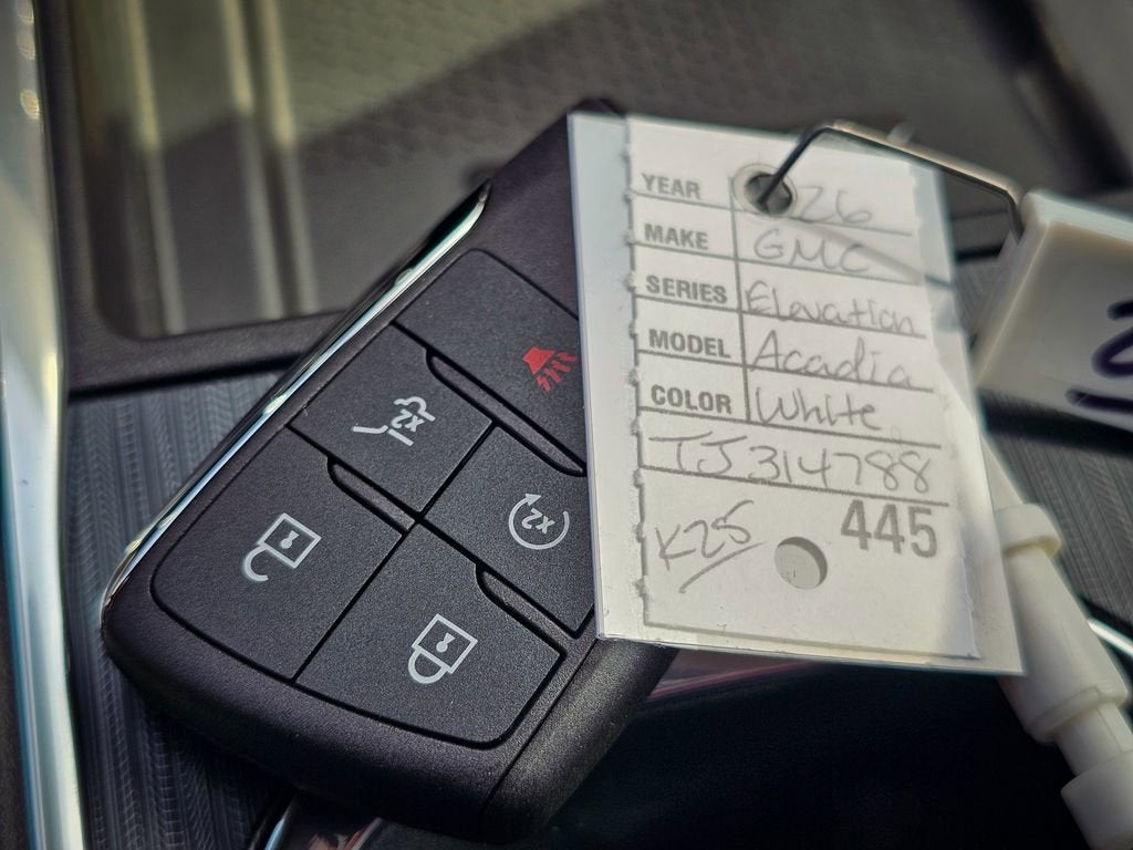 Recent Arrival! Summit White 2026 GMC Acadia Elevation AWD 8-Speed Automatic 2.5L DOHC